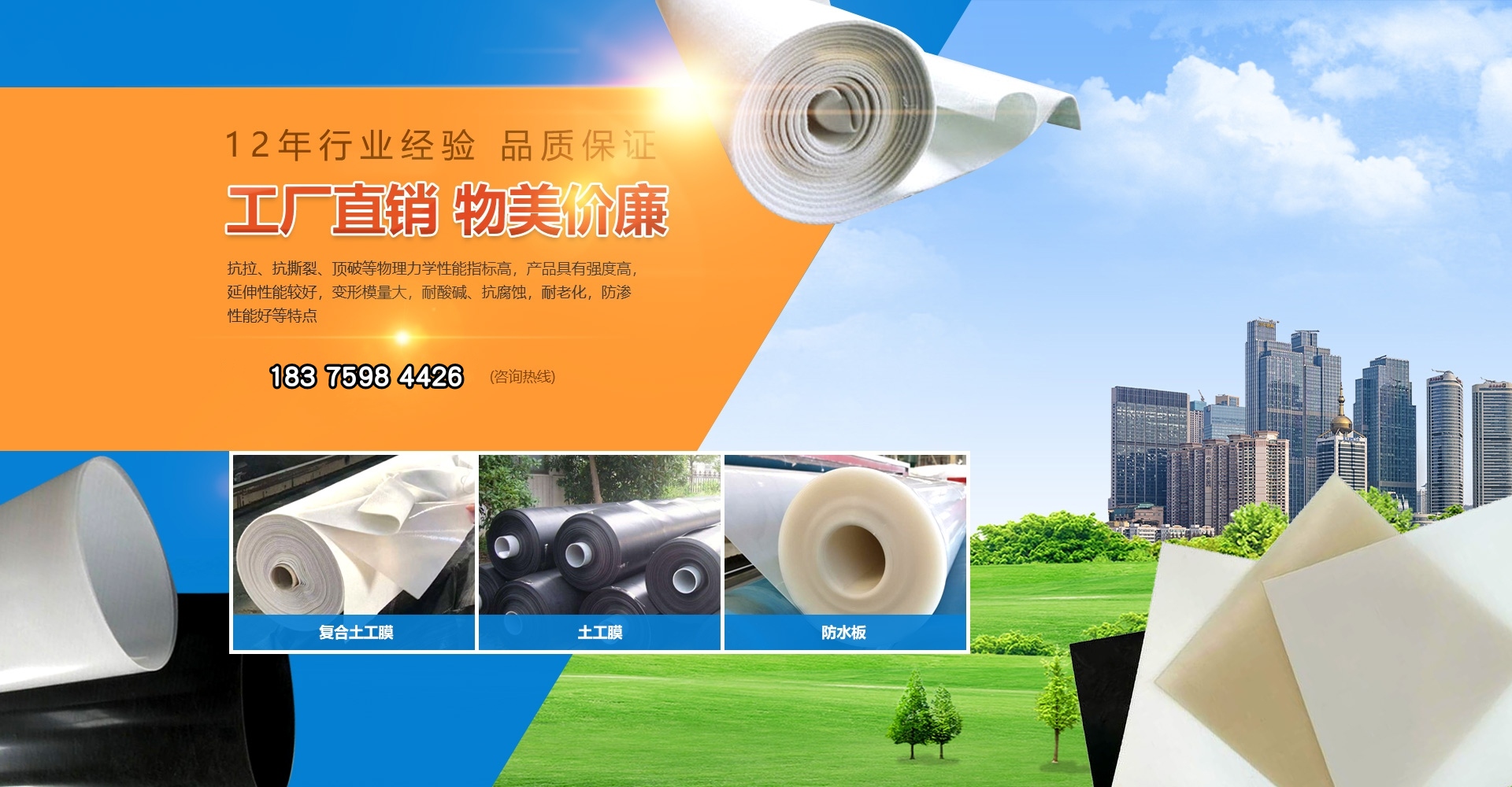 土工膜以塑料薄膜作為防滲基材,與無紡布復(fù)合而成的土工防滲材料,新材料土工膜它的防滲性能主要取決于塑料薄膜的防滲性能。防滲應(yīng)用的塑料薄膜,主要有聚氯乙烯(PVC)和聚乙烯(PE)、EVA(乙烯/醋酸乙烯共聚物),隧道應(yīng)用中常設(shè)計(jì)使用,它們是一種高分子化學(xué)柔性材料,比重較小,延伸性較強(qiáng),適應(yīng)變形能力高,耐腐蝕,耐低溫,抗凍性能好。